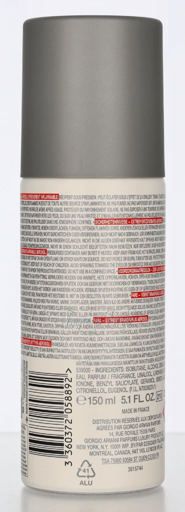 Armani Acqua Di Gio Pour Homme Deo Spray L8568200 carton @ 1 bottle x 150 ml