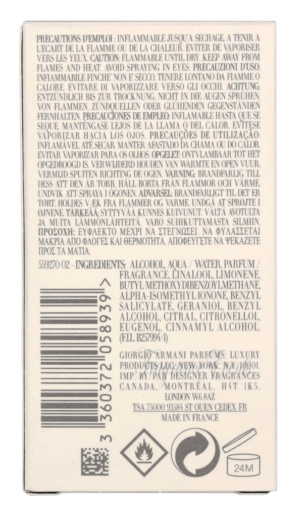 Armani Acqua Di Gio Pour Homme Edt Spray L5801900 carton @ 24 bottle x 30 ml