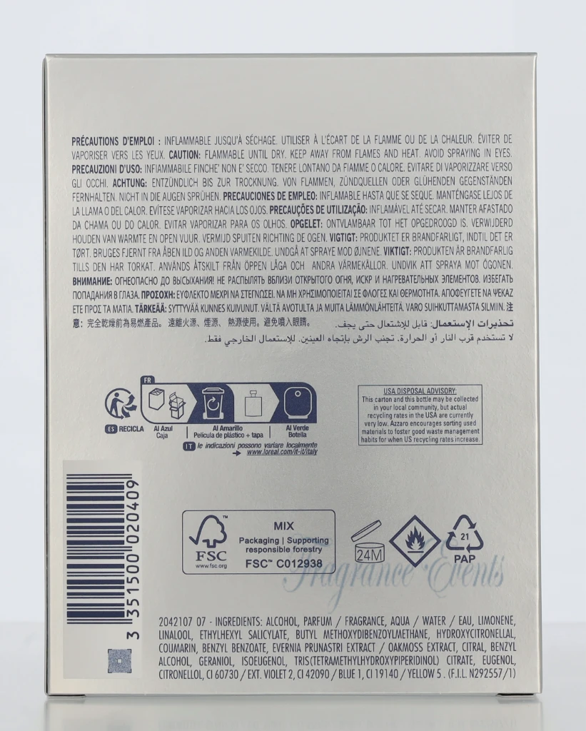 Azzaro Chrome Edt Spray LC630300 carton @ 1 bottle x 100 ml