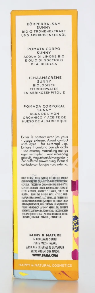 Baija Body Ointment Sunny - Organic Lemon Water And Apricot Kernel Oil PSUN100 carton @ 1 piece x 100 ml