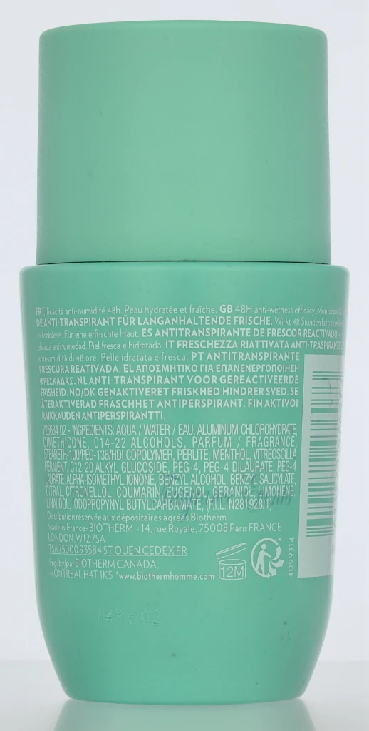 Biotherm Homme Aquapower Deo Roll-On Ice Cooling Effect / 48H Antiperspirant LA373900 carton @ 1 piece x 75 ml