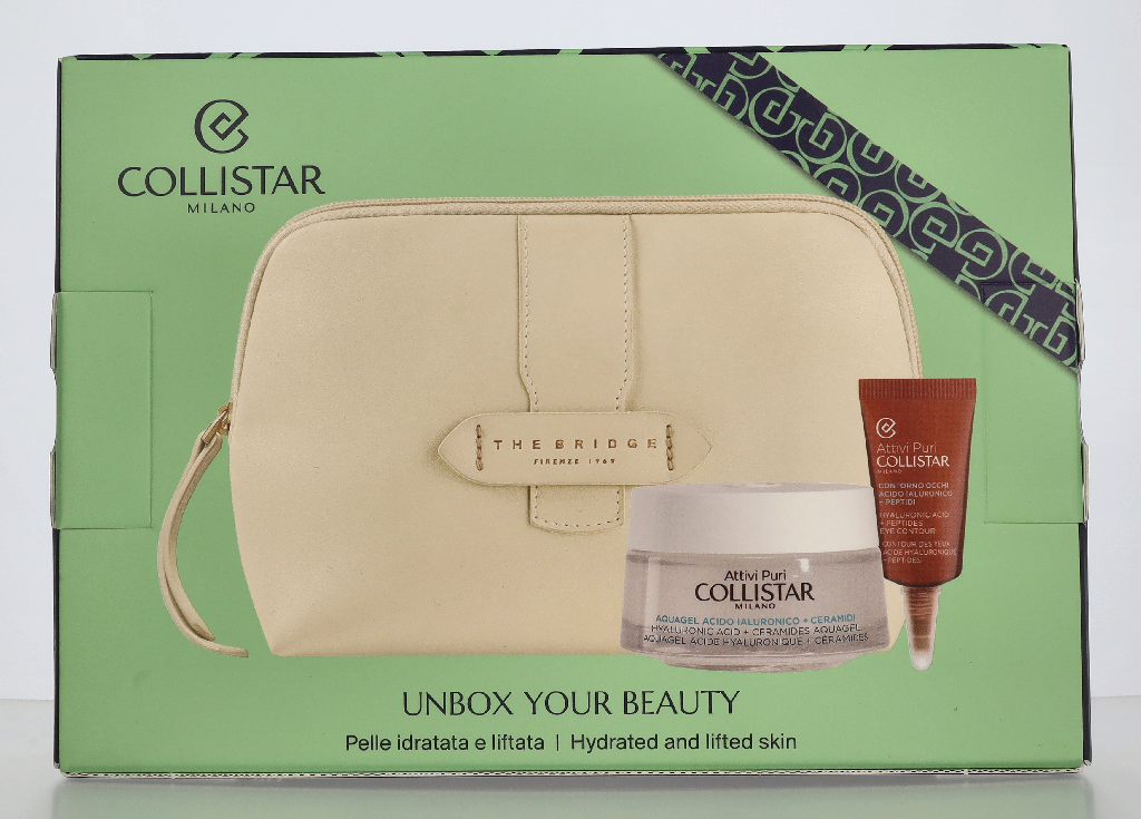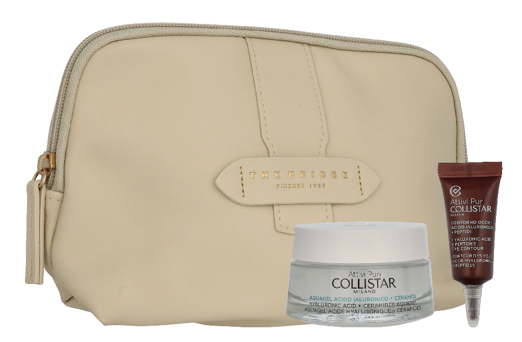 Collistar Attivi Puri Set Aquagel Hyaluronic Acid Cream 50 ml / Mini Pure Active Eye Contour 5 ml / Pouch @ 1 set x 55 ml