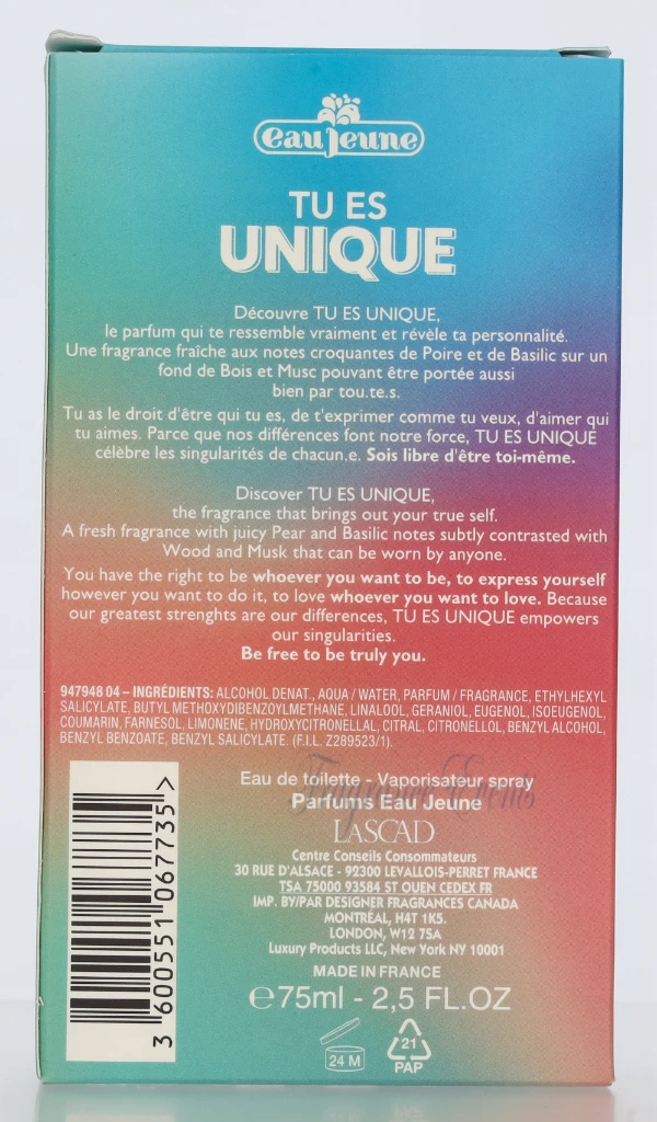 Eau Jeune Tu Es Unique Edt Spray carton @ 1 bottle x 75 ml