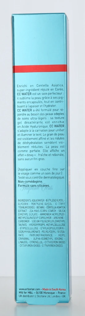 Erborian CC Water Centella Fresh Complex. Gel Skin Perfector Clair 6AA10371 carton @ 1 piece x 40 ml