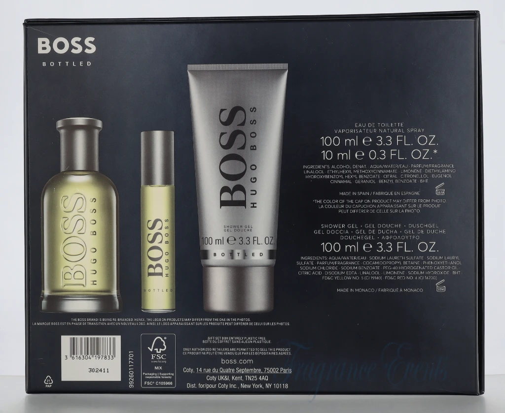 Hugo Boss Bottled Giftset Edt Spray 100ml/Edt 10ml/Shower Gel 100ml @ 1 set x 210 ml