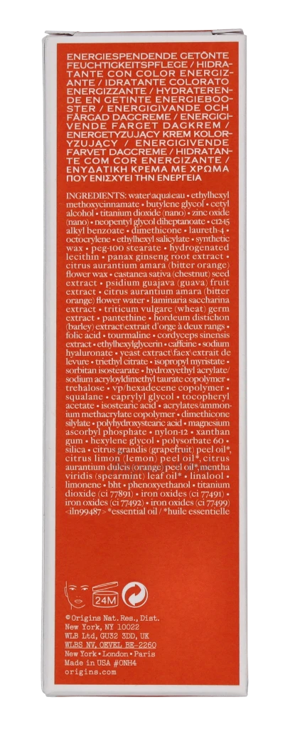 Origins Ginzing Energy-Boosting Tinted Moisturizer SPF40 Sheer Tint Release 0NH4 carton @ 1 piece x 50 ml