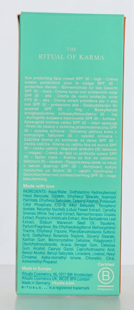 Rituals Karma Sun Protection Face Cream SPF30 Lotus Flower & White Tea carton @ 1 piece x 50 ml