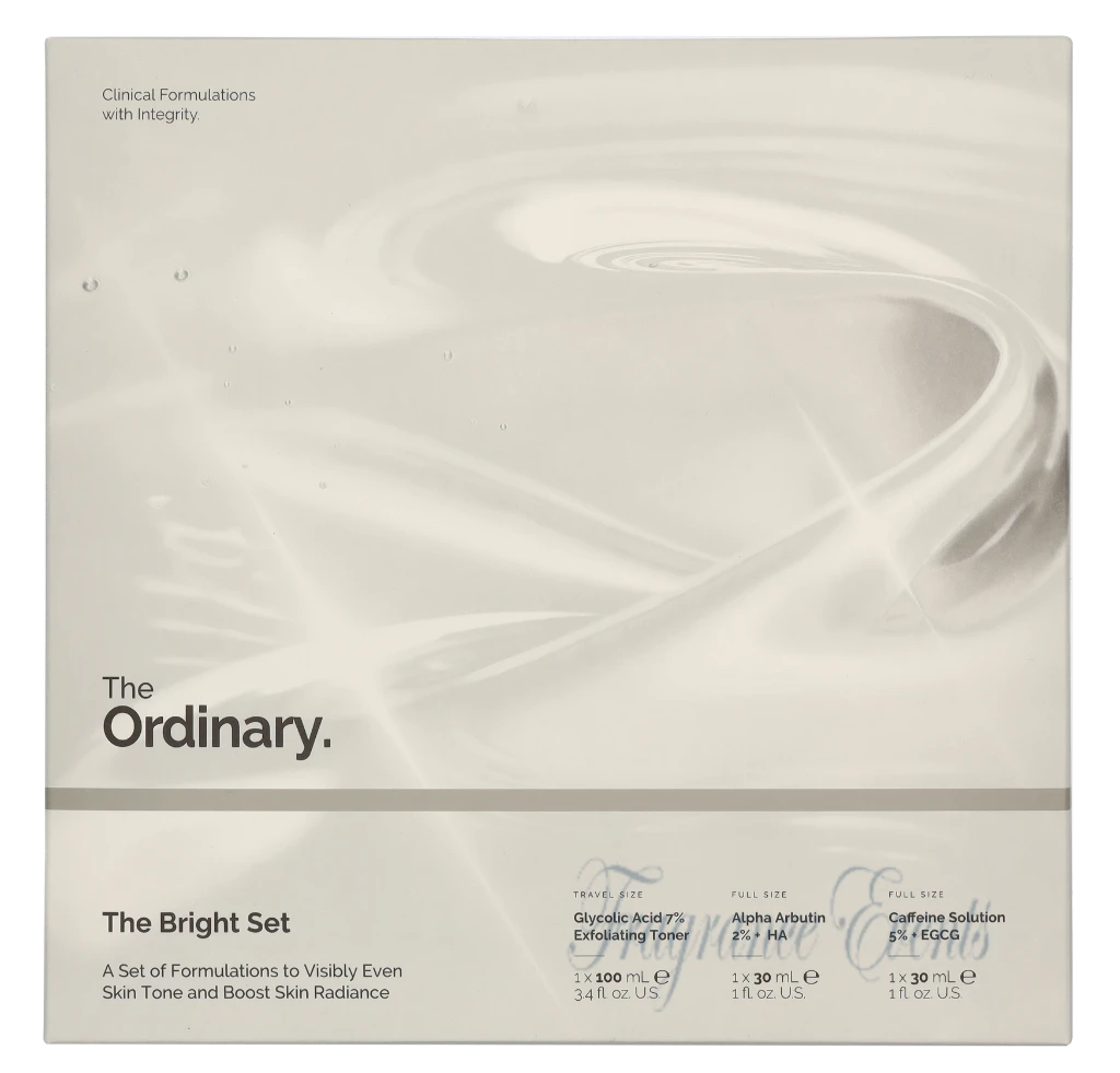The Ordinary The Bright Set Glycolic Acid 7% Exfoliating Toner 100ml/Alpha Arbutin 2% + HA 30ml/Caffeine Solution 5% 30ml @ 1 set x 160 ml